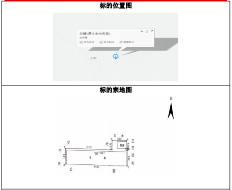 該標的位于余慶縣龍溪鎮(zhèn)關塘村,標的建筑物已拆除,證載土地面積:約493.1㎡,土地使用權性質:劃拔,土地證載用途:煙葉收購,土地證號:余國用(2007)第905號。