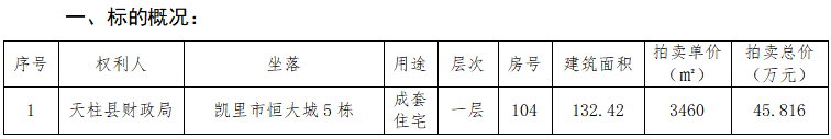 受天柱縣財政局委托,本公司于2021年12月28日(星期二)下午14∶30時,在凱里市環(huán)城東路麗晶天大酒店斜對面本公司三樓會議室,對以下標的物按現(xiàn)狀現(xiàn)樣進行公開拍賣。