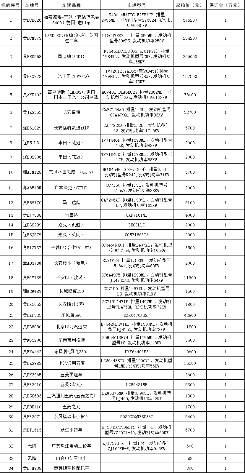 受委托,我公司將于2022年8月18日9:10在貴州省黔東南州公共資源交易中心及中拍平臺采用網(wǎng)絡(luò)與現(xiàn)場同步競價(jià)方式公開拍賣奔馳邁巴赫S400、路虎發(fā)現(xiàn)、奧迪Q5、皇冠、雷克薩斯等涉案車輛34輛(可憑裁定書自行辦理過戶)。